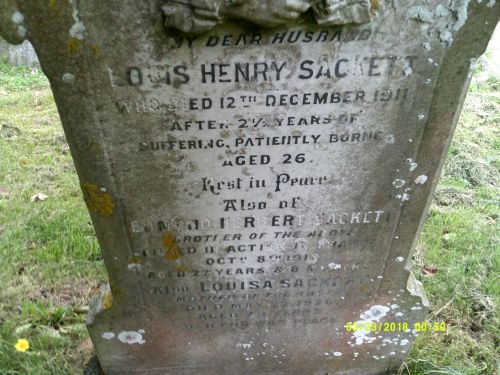 Louis Sackett, son, 25, married, (invalid), b. Faversham, Kent
