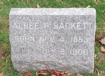 - Charles Weygant, The Sacketts of America, "7273. Albee P. Sackett, b. Nov. 4, 1853, d. July 9, 1900."