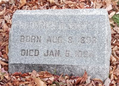 Frederick H Sackett, son of Harrison P Sackett and Caroline Matthews, was born in Danbury, Ottawa County, OhioG, on 8 August 1858.1,2,3 He died aged 65 in Toledo, Lucas County, OhioG, on 5 January 1924 and was buried at Oakland Cemetery, Sandusky, Erie County, OhioG.3