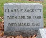 Clara E Sackett, daughter of Harrison P Sackett and Caroline Matthews, was born in Danbury, Ottawa County, OhioG, on 26 April 1868.1,2 She died aged 91 in Norwalk, Huron County, OhioG, on 13 March 1960 and was buried at Oakland Cemetery, Sandusky, Erie County, OhioG.2