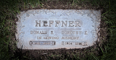 Dorothy Elizabeth Sackett, daughter of William Warren Sackett and Garnett E Hill, was born in Lorain County, OhioG, on 26 January 1914.1 She died aged 61 in Los Angeles, CaliforniaG, on 18 November 19752 and was buried at Mountain View Cemetery, Altadena, Los Angeles CountyG.3 She married Don Heffner. Don was born in Rouzerville, Franklin County, PennsylvaniaG, on 8 February 1911.3 He died aged 78 in Pasadena, Los Angeles CountyG, on 1 August 1989 and was buried at Mountain View CemeteryG.3