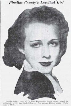 In December 1932 Dorothy won a photographic beauty contest and was named loveliest girl in Pinellas County, Florida.