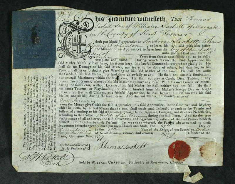 Thomas Sackett's apprenticeship indenture 27 November 1777